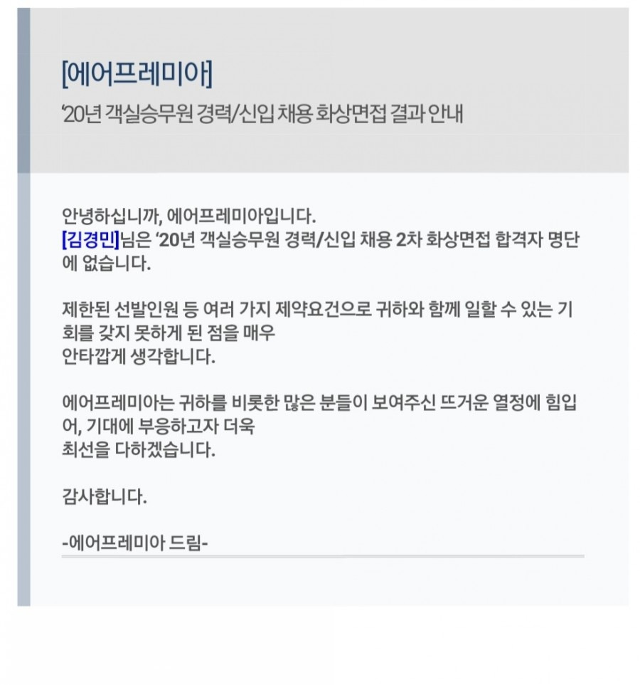 에어프레미아항공 경력직 2차 면접 탈락