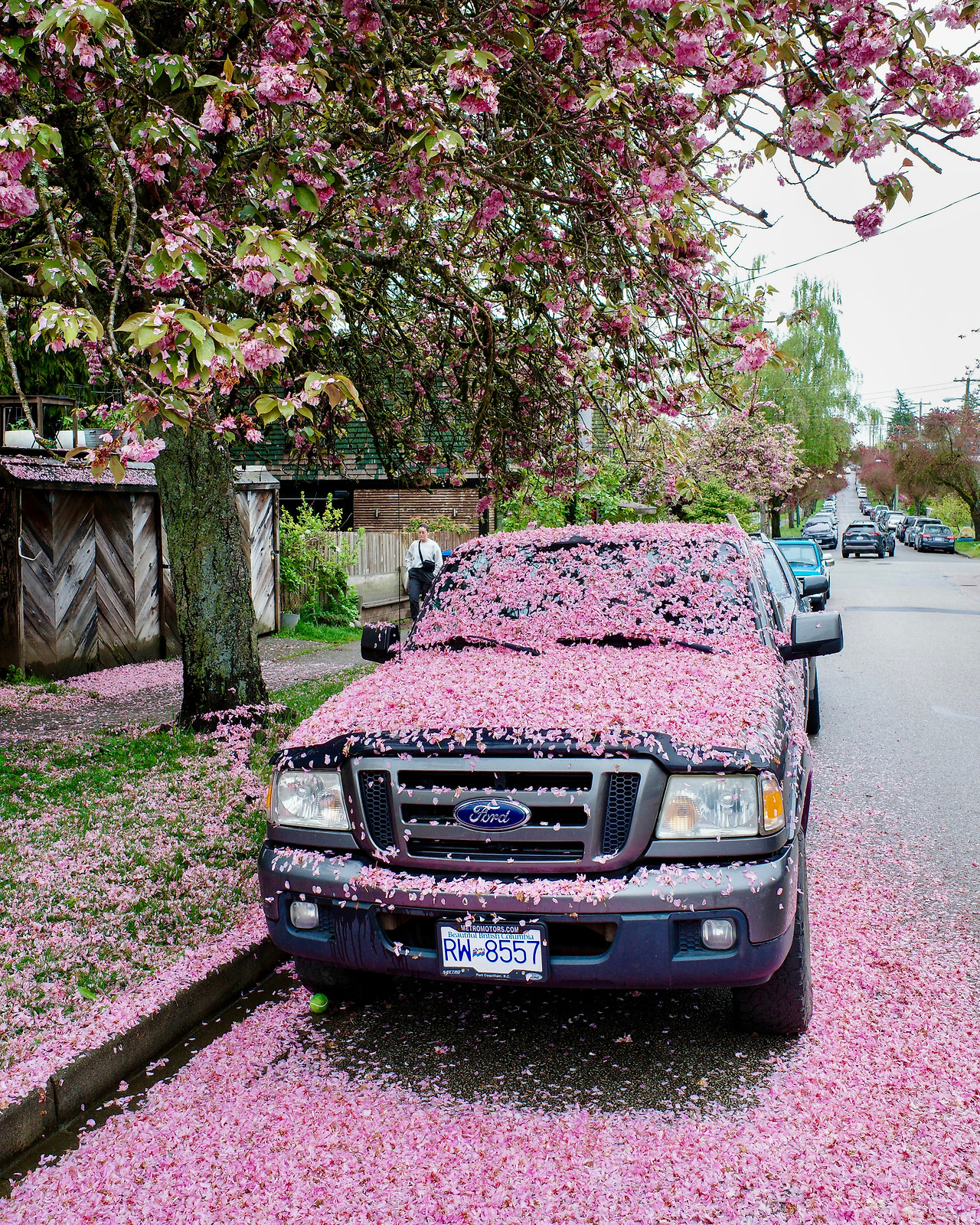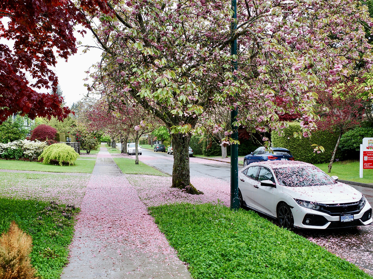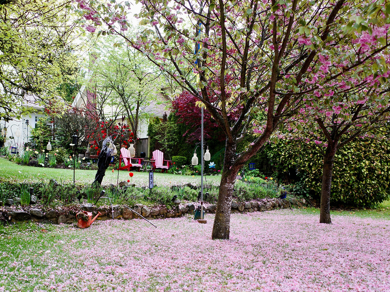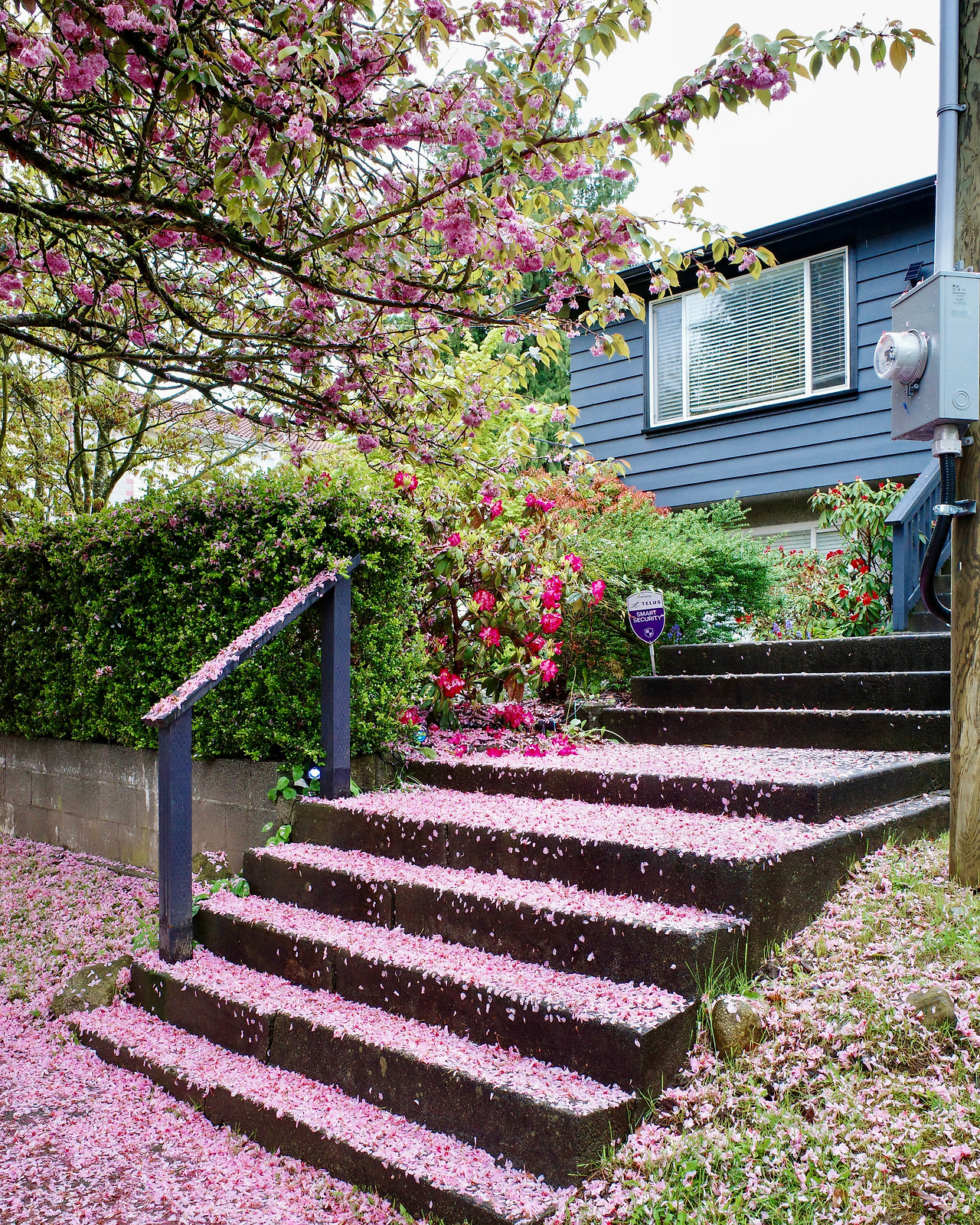 발밑에 밟히는 꽃잎들이 부드럽고 폭신합니다.
