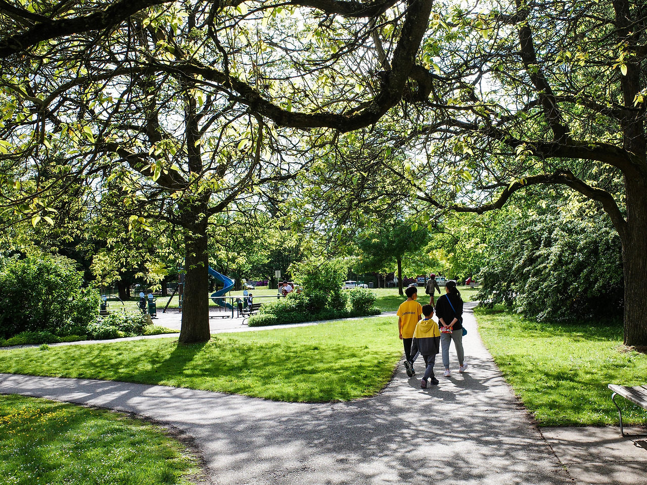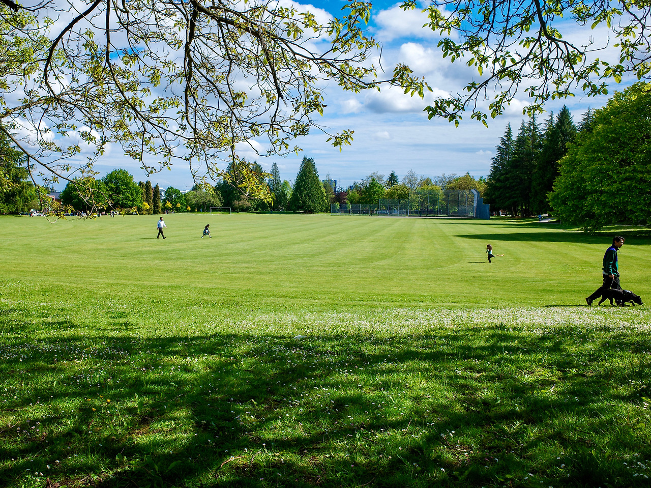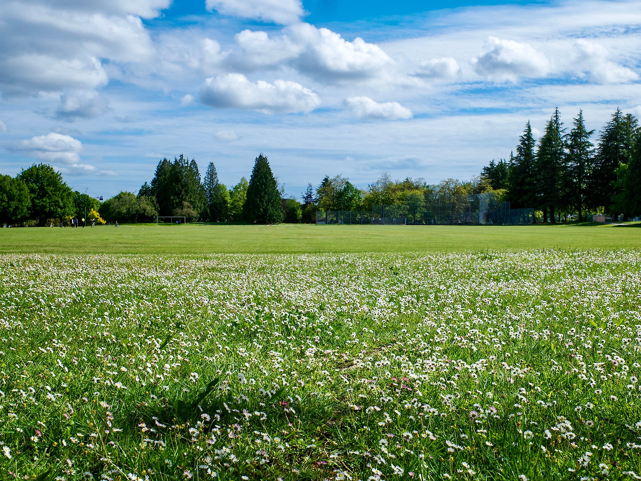 아이들 학교 앞 공원, 아이들이 평생을 제집 안마당처럼 노는 공간입니다. 절정을 맞은 데이지 꽃들이 푸른 잔디 위를 눈처럼 하얗게 덮고 있습니다.
