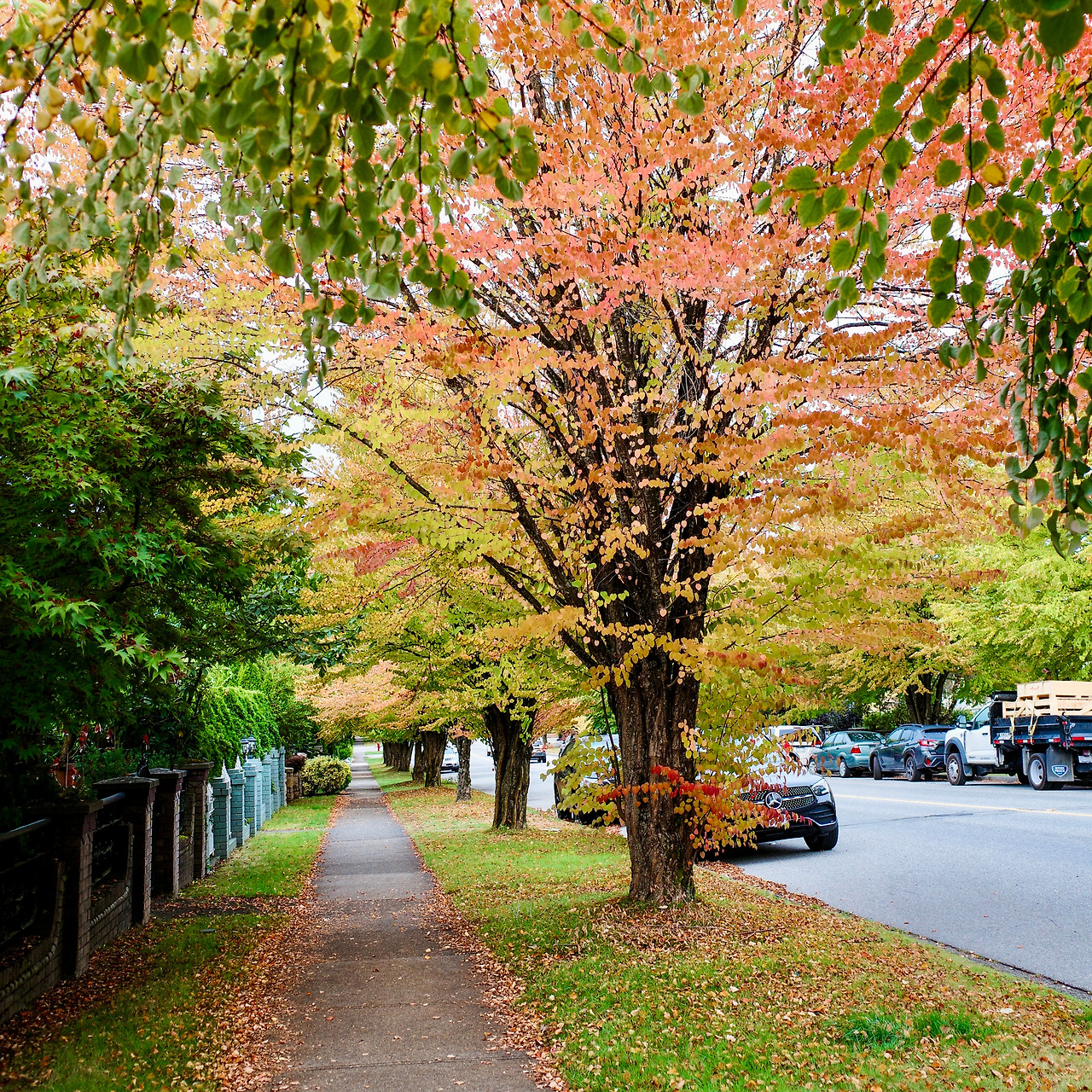 바닥에 수북하게 떨어진 헬리콥터 씨앗을 골라