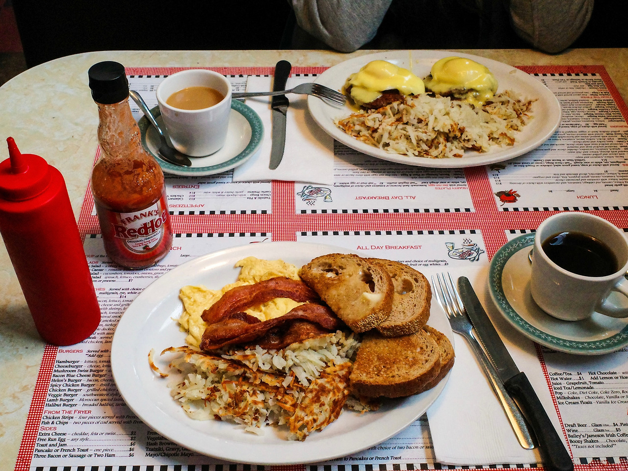 부부가 다 초딩 입맛이라 계란, 베이컨, 소시지와 빵으로 이루어진 북미식 아침식사를 매우 좋아합니다.