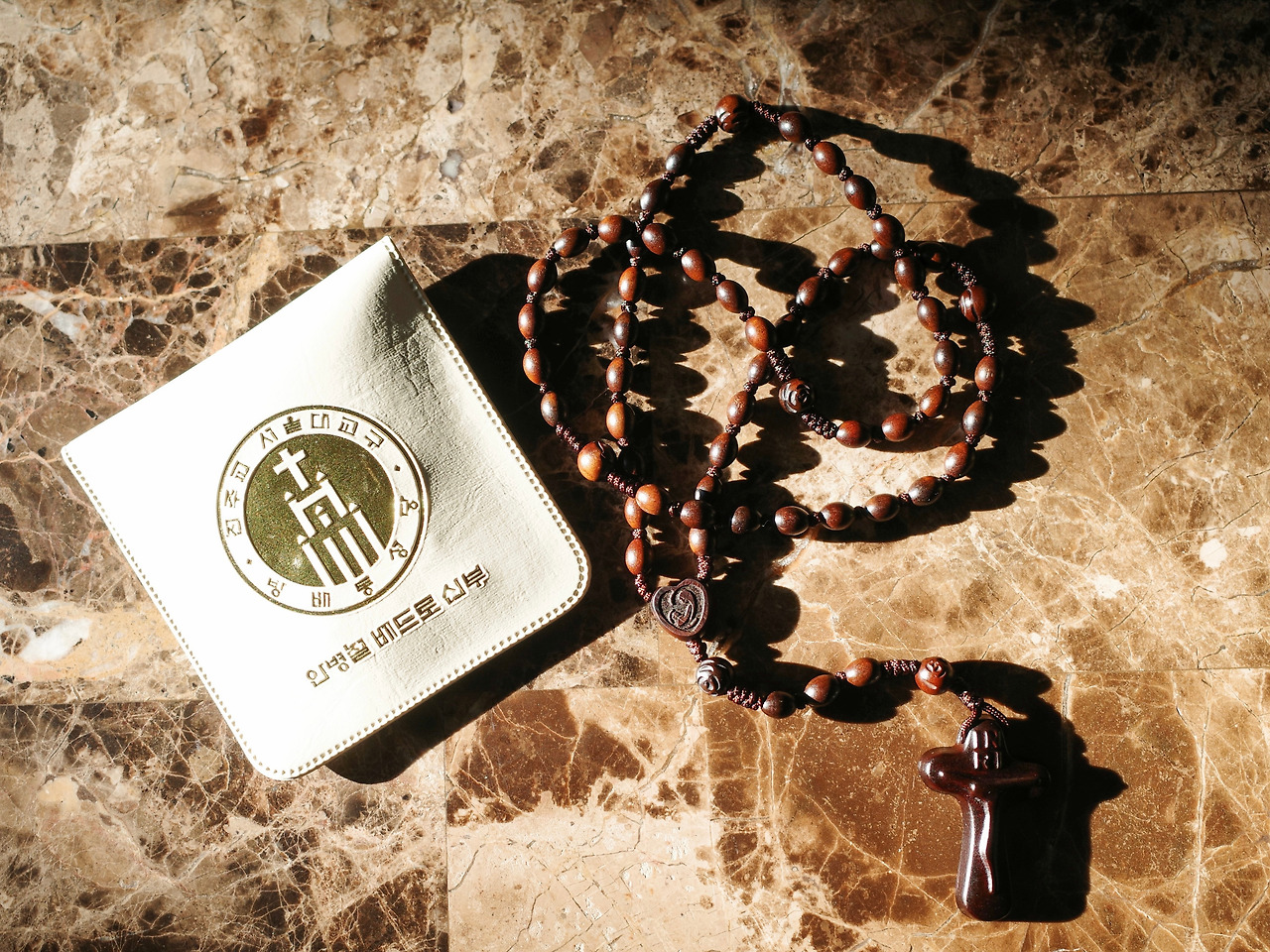 그 파우치 속에는 신 선생이 딱 원하던, 디자인이 너무 과하지도 않고 튼튼하게 잘 만들어져, 마음에 아주 쏙 드는 나무묵주가 하나 들어있었습니다.