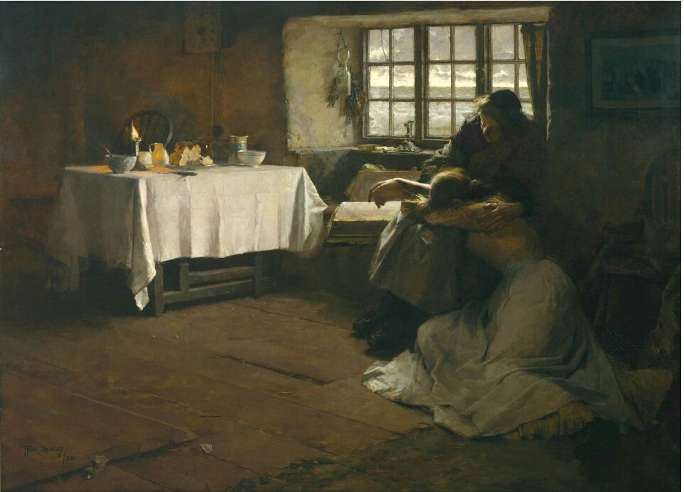 프랭크 브램리(Frank Bramley: 1857–1915) 는 영국 태생으로 뉴린 화파를 주도하였다. 뉴린 화파의 다른 화가들과는 대조적으로 실내 정경화에 일가를 이루었으며, 이 그림에서와 같이 자연과 인공의 빛을 적절히 혼합하여 작업하였다. 이 작품은 색조의 통일성과 미학적 소구력과 함께 감성적이면서도 서사적인 내용의 강렬함 때문에 뉴린 화파의 대표적인 저작중 하나로 오늘날에도 찬사를 받고 있다.