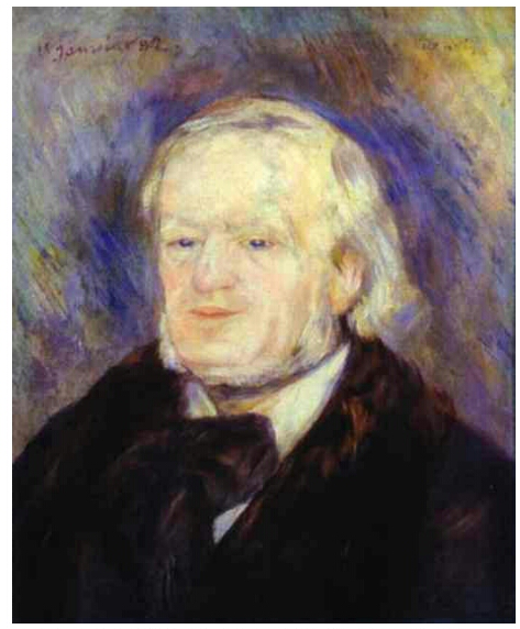 바그너는 당시 그곳에서 자신의 최후의 음악극인 오페라 파르지팔(Parsifal)의 작곡을 막 마친 상태였다. 1882년 1월 15일 르누아르는 30분 정도 시간을 내준 바그너를 모델로 작품의 윤곽을 잡은 다음, 작업실로 돌아와 그림을 완성하였다. 곧 <리하르트 바그너의 초상>이 그것이다. 인물 배경의 현란한 색감이 위대한 음악가의 아우라를 표현하고 있는 듯하다.