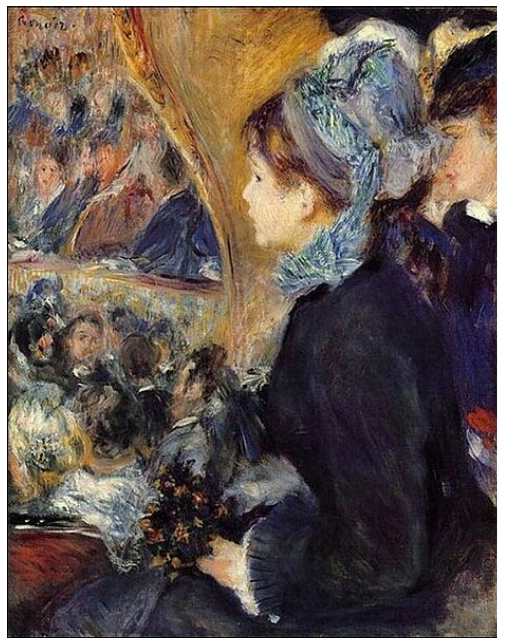 오페라는 19세기 후반 파리지앵들의 문화생활에서 중요한 위치를 차지하고 있었고, 많은 예술가들이 이를 예술적 영감의 원천으로 삼았다. 르누아르의 경우도 마찬가지였는데, 특별히 오페라 공연장을 좋아하였다. 그는 오페라 공연장이 고상한 파리지앵들을 관찰하기에 더할 나위 없이 적합한 장소라고 생각했다.