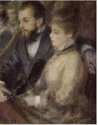 이 그림의 두 번째 버전도 있는데, 바로 <관람석에서>이다. 여기에서는 인물들이 정면이 아닌 옆 모습으로 그려져 있다. 선의 경계를 흐리게 처리한 붓터치가 은은한 분위기를 만들어 화면 속 남녀간의 온화한 사랑을 표현하고 있다 이 작품은 수집가 부부를 모델로 한 것으로 보이는데, 제작된 이후 개인 소장품으로만 보관되어 왔다.
