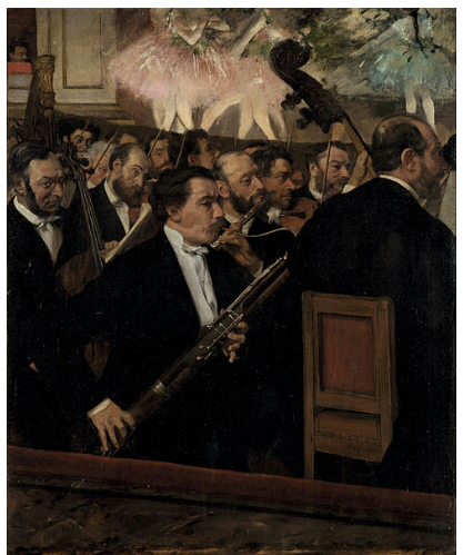 드가가 발레리나를 그리기 시작한 것은 <오페라극장의 오케스트라> (1868-1869)에서 부터이다. 바순 연주자인 데지레 디오(Désiré Dihau)로부터 초상화 부탁을 받고, 처음에는 단독 그림으로 준비하던 중 당초의 생각을 바꾸어 오케스트라 단원들과 함께 무대 위의 발레리나까지 그려 넣었다. 하지만 어디까지나 배경으로서였다. 심지어 여기에서 발레리나들은 얼굴도 보이지 않고 다리만 보인다. 이와 유사하게 <오케스트라 단원들>(1870-1871)에서도 무대의 발레리나는 전경에 얼굴이 크게 묘사된 단원들의 무대 배경으로서만 등장한다.