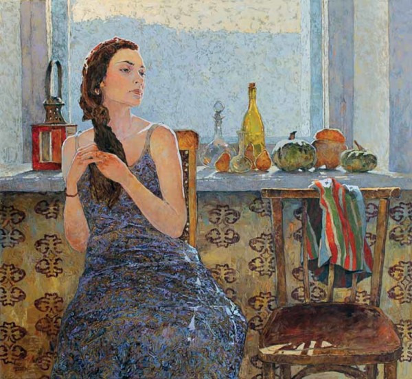 창가 의자에 앉아있는 여인은 머리를 땋으며 여유로운 표정이다. 창밖 풍경도 파스텔 풍으로 햇빛 속에서 부드럽게 가라앉아 있다. 빈 의자의 주인이 있어 잠시 자리를 뜬 그를 기다리고 있는 걸까. 생각이 편안하니 모습도 편안하다. 굳이 의자의 주인이 없으면 또 어떠랴.