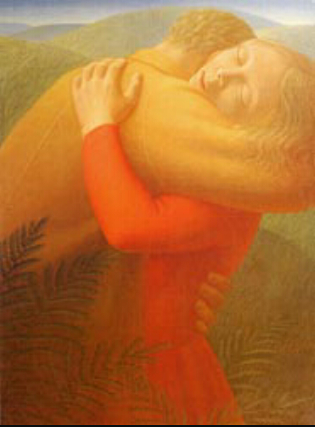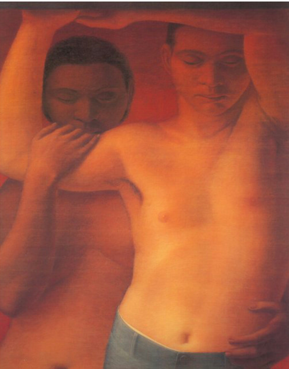 창 앞에 설 때 대개는 혼자인 경우가 많다. 이 그림은 특이하게도 두 사람이 등장한다. 연인이거나 부부인 남녀가 창 앞에 서있다. 눈을 감고 있어 표정으로 알 수 있는 것이 제한되지만 그래도 분위기는 느껴진다.