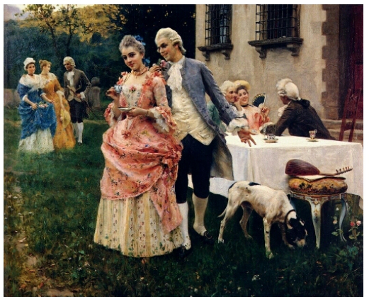 오후에 갖는 이같은 차 모임은 19세기의 여인네들에게는 하나의 관습이자 문화였다. 오후에 마시는 차인 “애프터눈 티”(afternoon tea)는 원래 영국에서 늦게 먹는 저녁 전에 요기를 달랠 겸 다과와 함께 차를 마시는 관행에서 비롯되었다. 다과회에는 지인들을 초대하였으며, 이는 곧 우정의 시작을 의미하는 것이었다. 이러한 관습은 처음에는 귀족들의 사교를 위한 것으로 상류층에서 시작되었으나 차츰 일반 가정에까지 확산되었다. 이탈리아 출신 안드레오티의 복고적인 로코코풍의 그림 <오후의 차>는 상류사회 티파티의 모습을 보여준다.