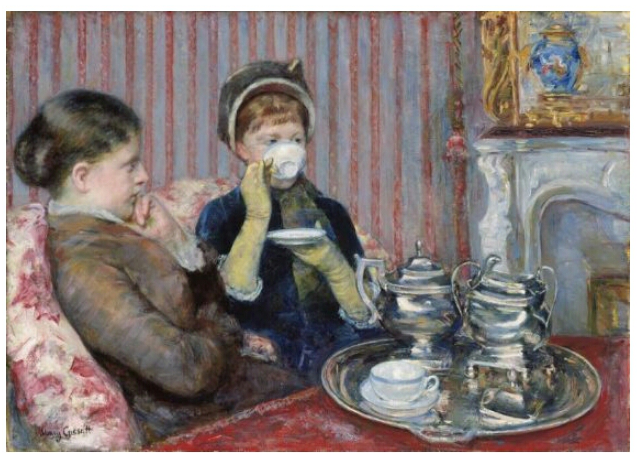 인상주의 화가들에게 차를 마시는 풍경은 근대 일상 생활의 한 단면을 보여주는 좋은 소재거리였다. 특히 실내 풍경을 많이 그린 카셋의 경우에는 더욱 그러하였다.