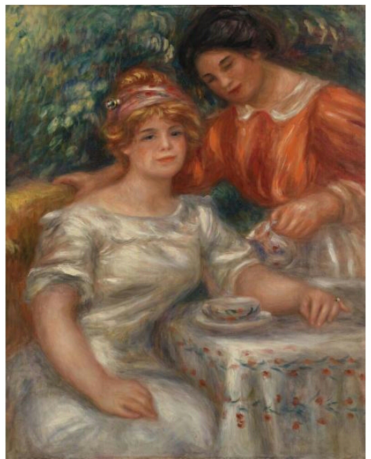 그밖에도 다른 인상주의 화가들이 그린 차 관련 그림들이 있는데, 피에르 오귀스트 르누아르의 <차 마시는 시간>이나 툴루즈 로트렉의 <알린 길베르 부인>, 제임스 티소의 <차> 등이 그것이다. 르누아르는 하인의 시중을 받으며 차를 마시는 상류층 귀부인의 모습을 르누아르 특유의 부드러운 필치로 표현하고 있다.