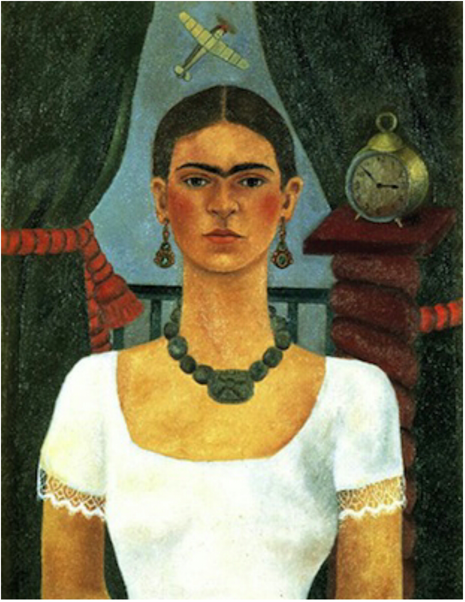 프리다 칼로는 자화상을 많이 그렸다. 그녀는 10대 후반 학생 시절 버스사고로 쇠막대가 몸을 관통하여 척추를 크게 다치는 불운을 겪었다. 수 개월을 병원에 입원하여 치료를 하면서 그때부터 본인의 모습을 관찰하고 그리기 시작하였다. 자연스럽게 자화상을 소재로 그림을 그리게 된 것이다.