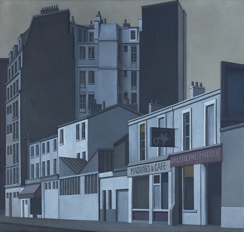 안드레아스 히스(Andreas His:1928~2011)는 바젤 태생의 스위스 화가이다. 거리 풍경은 히스의 그림 주제 가운데 하나로 일찍이 30대 초반인 1960년대에서부터 시작되어 50대 중반 이후인 1980년대까지 쭉 이어졌다. 이들 거리 풍경은 주로 파리의 거리를 그린 것들이 많고, 모두다 이 그림처럼 사람이 없는 텅빈 거리와 건물만 단색으로 등장한다. 그가 이 텅빈 거리와 건물들을 통해 말하고 싶은 것은 무엇이었을까.