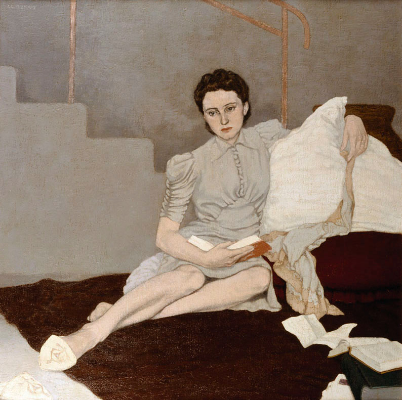 꼭 그래서 그런 건 아니겠지만 여인의 표정은 다소 침울해 보인다. 시선 또한 초점을 잃고서 다른 생각에 빠져 보이는 것 너머에 있다. 한 손으로 베개를 끌어안고 있는 모습도 뭔가 불안하여 어디에 의지하고 싶은 심리를 드러내고 있다. 의상의 색깔조차 가라앉는 회색이다. <회색의 소녀>는 화가 루이 르 브로퀴가 20대 초반에 그린 초기작이다. 회색이 그의 관심을 끌었는지 30대 중후반의 5년 정도의 작품들은 모두 회색 일색이어서 화가의 작품 연대 구분에서 "회색 시기"로 명명된다. 이후 그 다음 5년은 다시 흰색에 매혹되어 흰색 일색의 작품을 그리고 있어 이 시기는 "흰색 시기"로 불리운다. 무채색의 연속 시리즈인 셈이다.