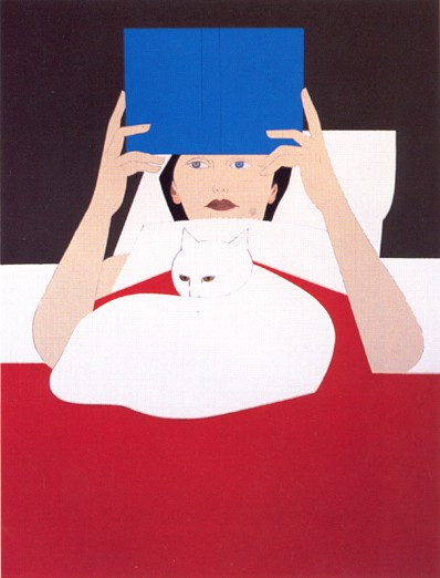 화면의 구성은 비교적 간결하다. 한 여인이 침대에 누워서 흰 고양이가 함께 책을 보고 있다. 형태의 묘사가 단순하지만 색채 대비가 강렬하여, 한번 보면 잊혀지지 않는다. 그림의 모델은 책을 읽고 있는 화가의 딸이다. 반려동물로서 개뿐 아니라 고양이도 인기를 얻고 있다. 하지만 왠지 고양이에게는 거리감이 있다. 개는 주인과수직적 관계에 기초한 상하복종이 분명하지만, 고양이는 수평적 관계이거나 거꾸로 자신이 주인이라고 여기는 것 같다. 오죽하면 고양이 키우는 사람들이 자신을 자조적으로 고양이 집의 집사라고 칭하겠는가. 그림에서도 흰 고양이가 마치 주인인냥 침대 한가운데에 도도하게 자리하고 있다.