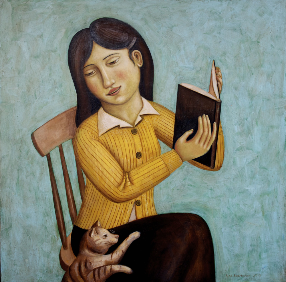 릭 비어호스트(Rick Beerhorst : 1960 - )는 미시건 주의 그랜드 래피즈 태생의 미국 화가이다. 그의 <산만한 독서가>는 같은 해에 동일 제목으로 그린 다른 한 점이 더 있다. 여인의 모습과 옷 색깔, 고양이의 종류만 다를 뿐 기본 구도와 자세는 동일하다. 책을 소재로 하거나 책 읽는 것을 내용으로 한 그의 그림은 꽤 된다. 책은 그가 즐겨 사용하는 기호 중 하나이다. 그의 도상학은 비잔티움의 이콘 양식을 떠올리게 하는데, 어떤 때는 주제의식까지도 비슷하다. 이콘화는 이미지에의 집중을 통해 성스러운 것과의 연결을 쉽게 하는 매개적 기능을 기본으로 한다. 하지만 그의 그림을 얼핏 보면 종종 혼란스러움을 주며, 매력적으로 보이는 것도 거부하는 듯하다.