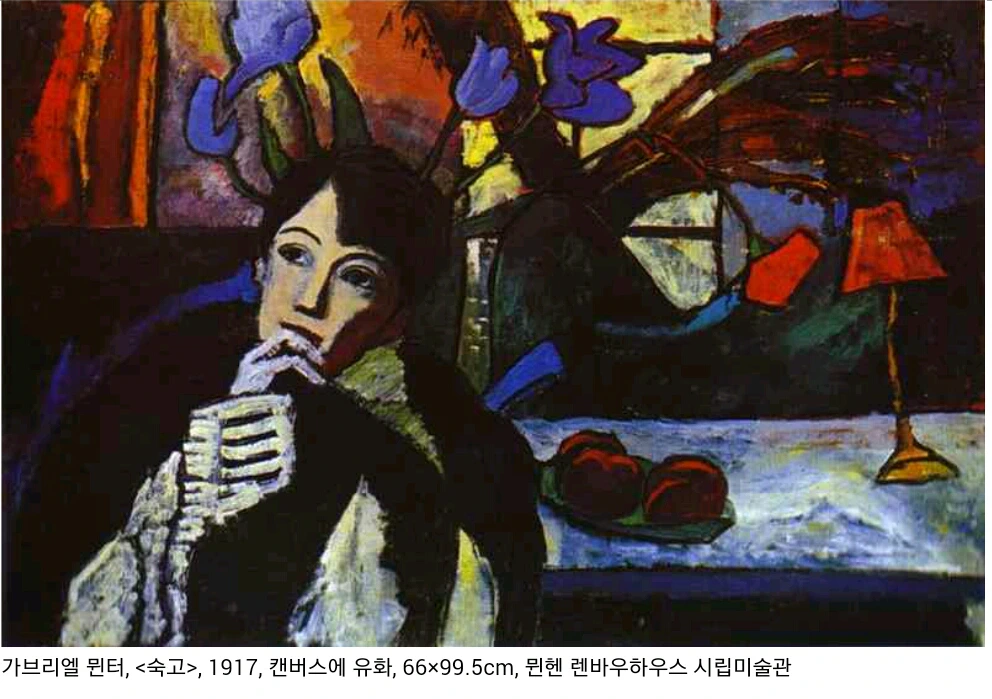 가브리엘 뮌터는 20세기 초 뮌헨 전위 그룹인 독일 표현주의 화가이다. 1877년 베를린 태생으로 어렸을 때부터 그림을 그리기 시작하였다. 유복한 집안에서 부모의 적극적인 성원에 힘입어 개인교습까지 받아가며 역량을 키워 나갔다. 부모의 유산으로 비교적 경제적으로 여유있는 상태에서 예술가의 길을 걸을 수 있었다. 본격적인 공부는 새로운 진보적 성향의 뮌헨 팔랑스 학교에 들어가면서부터 시작되었다.