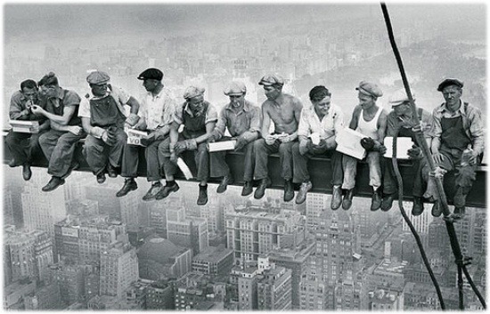 록펠러 센터를 짓던 인부들이 찍힌 꽤 유명한 사진이다. 보기만 해도 아찔하다. 도시락을 먹다가 뭐 하나가 떨어져도 주워 먹는 건 불가능해 보인다. 뉴욕의 모든 고층 빌딩은 이러한 인부들의 손에서 태어났을 거라 생각하니 화려함 뒤에 숨겨진 인고의 시간이 느껴진다.