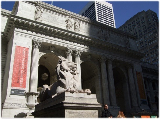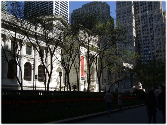뉴욕 공립 도서관을 앞에서 바라 본 모습. 그러나 안에 들어갈 수 없었다. 여행 책자에 분명 일요일은 휴무라고 되어있었건만 일정을 바꿀 때 이상하게 그 글자가 눈에 보이지 않았나 보다. 책도 많고 건물의 내부가 참 아름답다고 해서 기대가 컸기 때문에 아쉬움이 남았다.