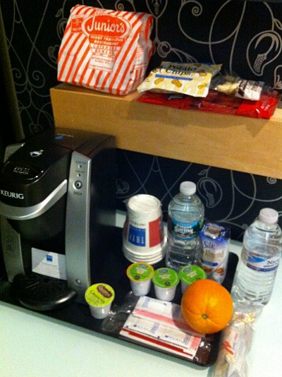 싼 가격에 조식을 먹었던 Stanford 호텔과는 달리 여기에는 조식이 따로 없어서 아침에 먹을 식량을 구비해두었다. 여기에 있던 커피 머신이 참 마음에 들었다. 커피를 마시지 않아서 있어도 소용없다고 생각했는데 캡슐 중에 녹차라떼가 있는 걸 보고 너무 반가웠다. 처음 쓰는 거라 헤맸지만 곧 따뜻하고 진한 녹차라떼를 마실 수 있었다.