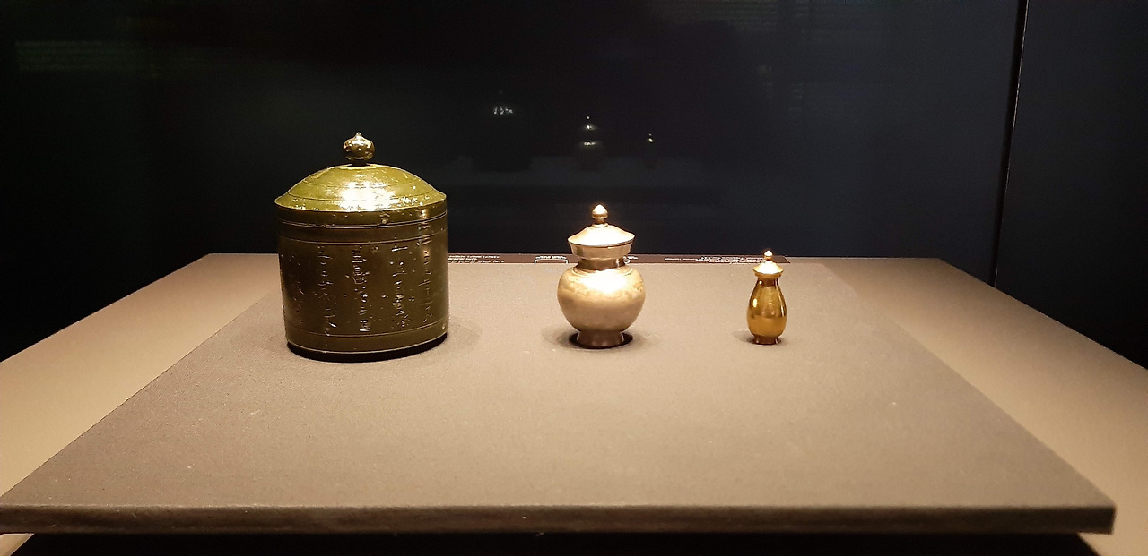 아무리 극적으로 공간을 연출한다고 해도, 전시물이 훌륭하지 않다면 감동을 줄 수 없다. 실물로 본 백제금동대향로는 듣던 대로 아름다워서 백제인들이 상상한 신선세계를 마주한 기분이었다. 겹겹이 쌓인 산봉우리 사이로 보이는 작은 악사와 동물들이 제각기 달라서 귀여웠고, 꼭대기에 조각된 봉황은 어디선가 날아와 이제 막 자리에 앉은 듯이 생동감 있었다. 왕실 제사에서 향을 피우며 봉우리 틈 사이로 연기가 피어오를 때 아름다움의 절정을 이뤘을 것이다. 실제 모습은 보기 어렵지만 아래의 박물관 공식 유튜브 영상으로 가늠할 수 있다. 역시 금동대향로는 백제의 자존심을 드러내는 유물 중 하나다.