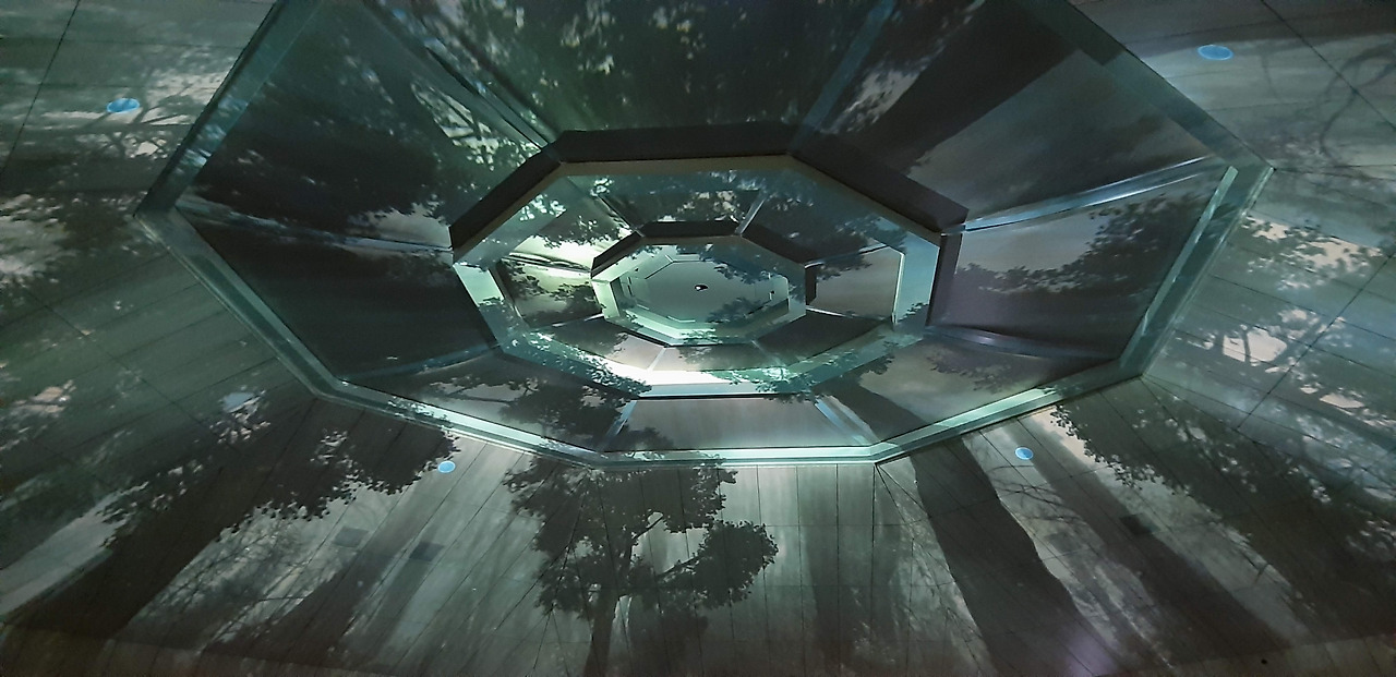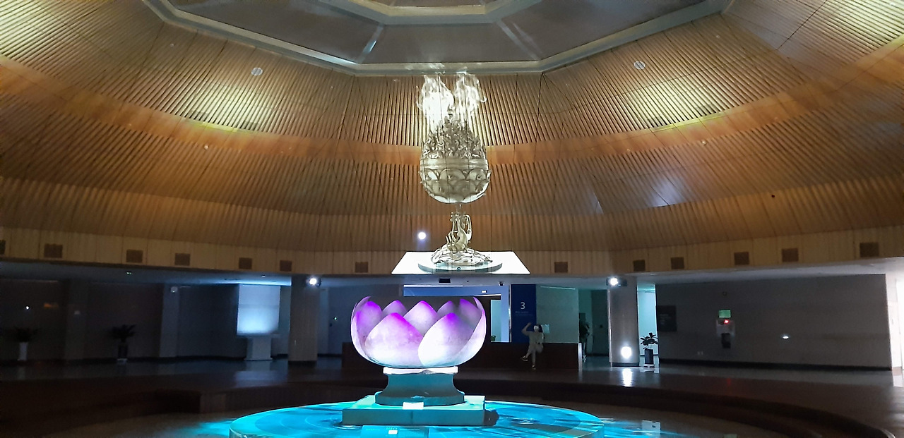 전시실을 둘러보던 중에 디지털 실감 콘텐츠가 로비에서 상영된다는 방송을 들었다. 큰 기대를 하지 않고 로비 의자에 앉아 있는데 갑자기 장막이 서서히 올라오면서 천장의 유리문을 덮기 시작했다. 컴컴해진 로비를 가득 채우며 영상이 상영되었고 예상보다 너무 좋았다. 내가 관람한 영상은 백제금동대향로에 대한 내용이었다. 주변에 향로의 풍경이 펼쳐져서 나도 그 일부가 된 느낌이었고 겉에 새겨진 악사와 동물을 하나씩 자세히 볼 수 있었다. 박물관 홈페이지에 다시 들어가니 백제문양을 다룬 영상도 시간에 따라 번갈아서 상영하는 모양이다. 미리 알았더라면 둘 다 보았을 텐데 아쉽다.