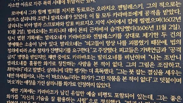 중간중간 카라밧지오의 작품들이 섞여 있는 구조였다.