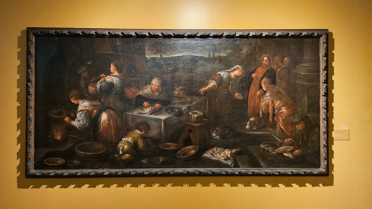 주방의 개, 고양이, 식재료, 화롯불 등이 예수와 함께 당당히 그림의 일부로 그려져 있다.