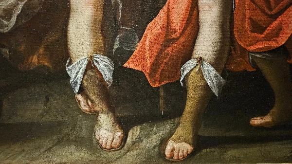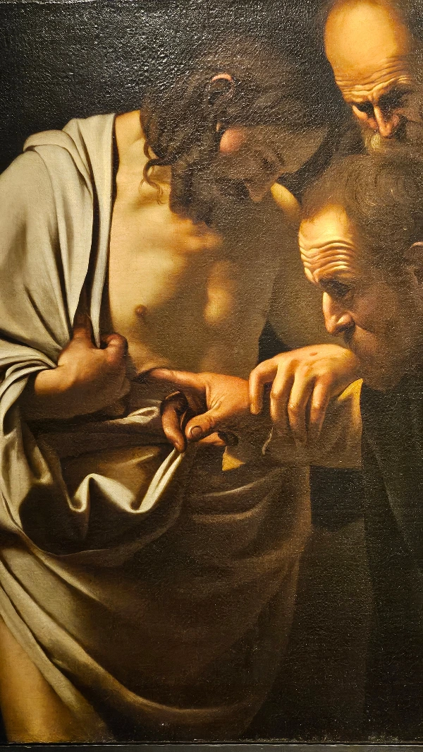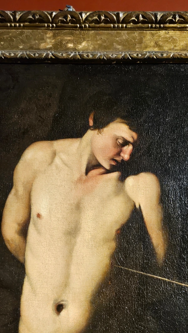 : 익숙한 얼굴이라고요? 역시 카라밧지오가 자신의 얼굴을 모델로 한 그림. 활을 쏘아 죽이는 벌을 받고 있는 사람이다. 전시 설명에 따르면, 이 그림의 창의적인 점은 화살을 쏜 사형집행인은 정작 그림에 나오지 않고, 사형수만 화살 쪽을 내려다보는 구조로 만든 것이라고 한다.