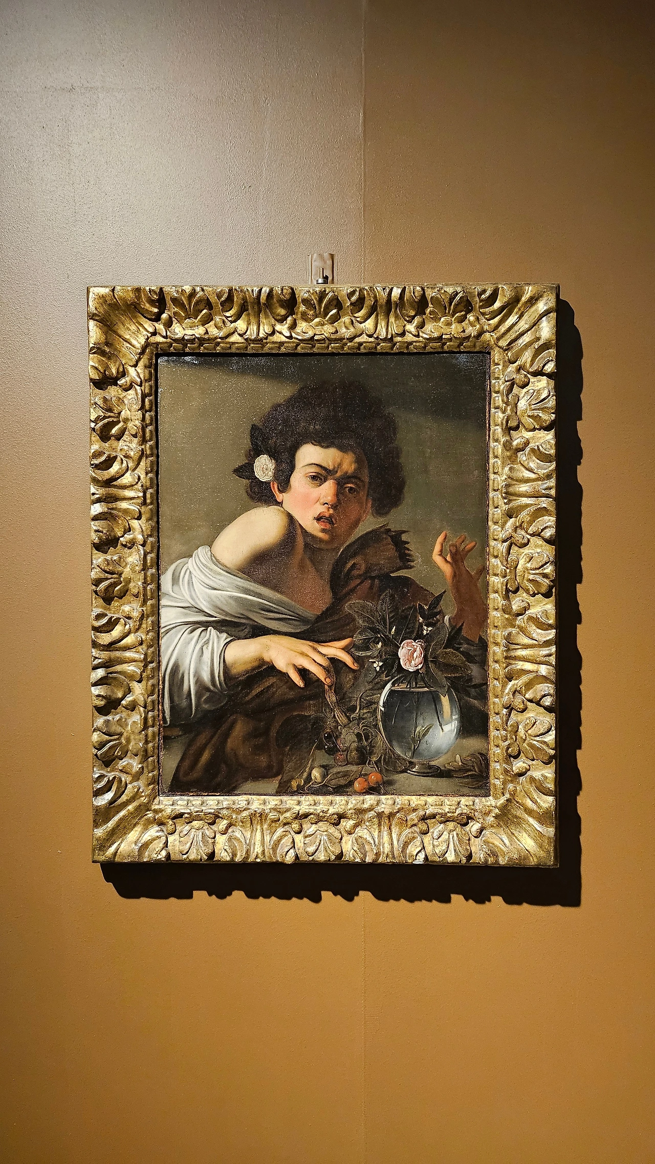 : 카라밧지오의 작품이자 이번 전시의 대표작인 <도마뱀에게 물린 소년>.