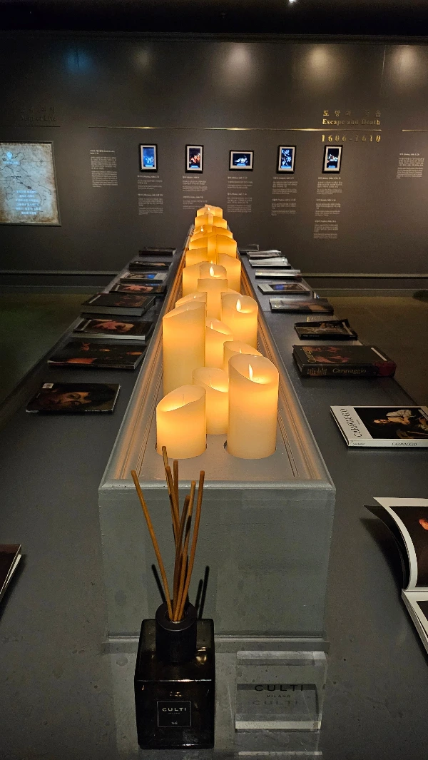 이탈리아 향수 브랜드의 디퓨저를 세팅해 두고 미젤렐레 같은 성가를 틀어두었으며(실제로 종교화가 많았다), 마지막 관에도 성당처럼 촛불을 켜두어, 종교가 없는 사람도 성스러운 느낌, 그리고 종교가 중요했던 바로크 시대에 머무르는 느낌을 받으면서 전시를 즐길 수 있었다.