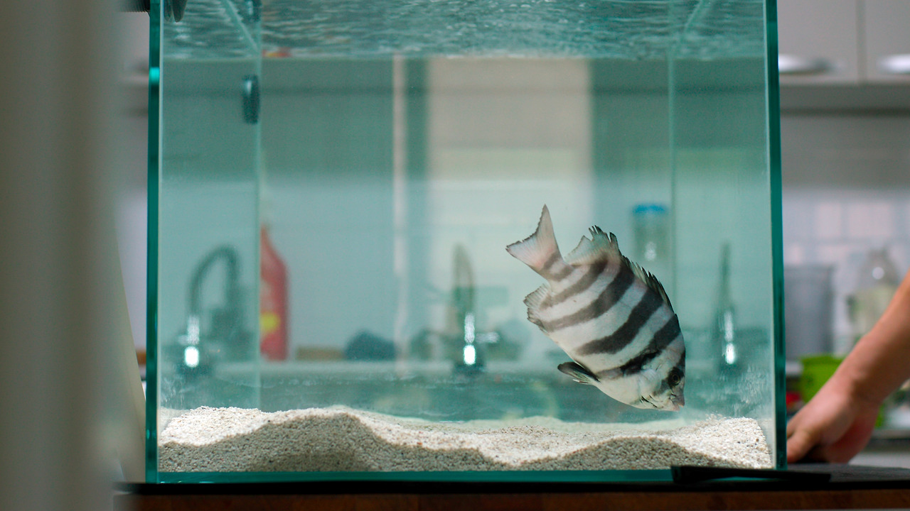 흰검둥이라는 이름은 최의봉 씨의 쌍둥이 아들 중 하나가 지은 이름이다. 흰 줄과 검은 줄이 반반이니 딱 맞는 이름이다. 바닷물 수조는 세팅에 시간이 꽤 필요하다. 물고기가 없는 상태로 시스템을 가동하며 불순물을 여과하고 필요한 박테리아가 자리 잡게 하며 반대로 병원균이나 해충은 제거해야 한다. 그것을 물잡이라 하는데 그 과정이 끝나야 물고기가 안전하게 입주할 수 있다. 물고기 투입도 신중해야 한다. 원래 살던 곳의 수질과 수조의 물이 온도, 염분, PH와 그 외 성분이 다르므로 물맞댐이라 하여 조금씩 물을 흘려 적응시키는 과정을 거치고 나서야 비로소 흰검둥이는 수조에 들어갈 수 있었다.