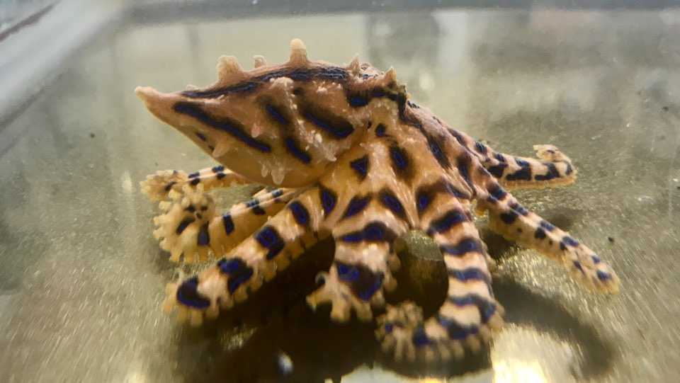 2018년 우연히 입수한 파란선문어를 수조에서 사육해 볼 기회가 있었다. 정보가 많지 않던 터라 수조 밖으로 탈출하는 것이 가장 우려되었다. 주변에 여러 사무실이 입주해 있어 혹여라도 복도에서 집 나간 문어를 마주친 누군가가 손으로 만졌다가 큰 일을 당하면 안 되기 때문이었다.