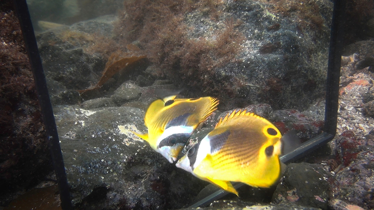 동물의 지능과 인지 능력을 알아보는 거울 실험을 통과한 동물은 돌고래나 영장류처럼 이미 똑똑하다고 알려진 동물 외에 새와 물고기도 있는데 그중 일본 오사카공립대의 코다 마사노리 교수님의 청줄청소놀래기 실험은 내가 직접 그 실험실을 방문해 촬영하기도 했다. 물고기가 거울에 비친 물고기가 자신이라고 인지한다는 사실은 어떻게 알 수 있는 걸까?