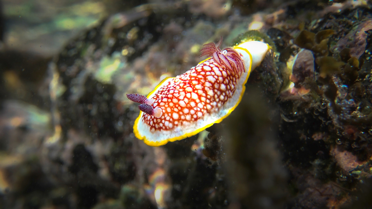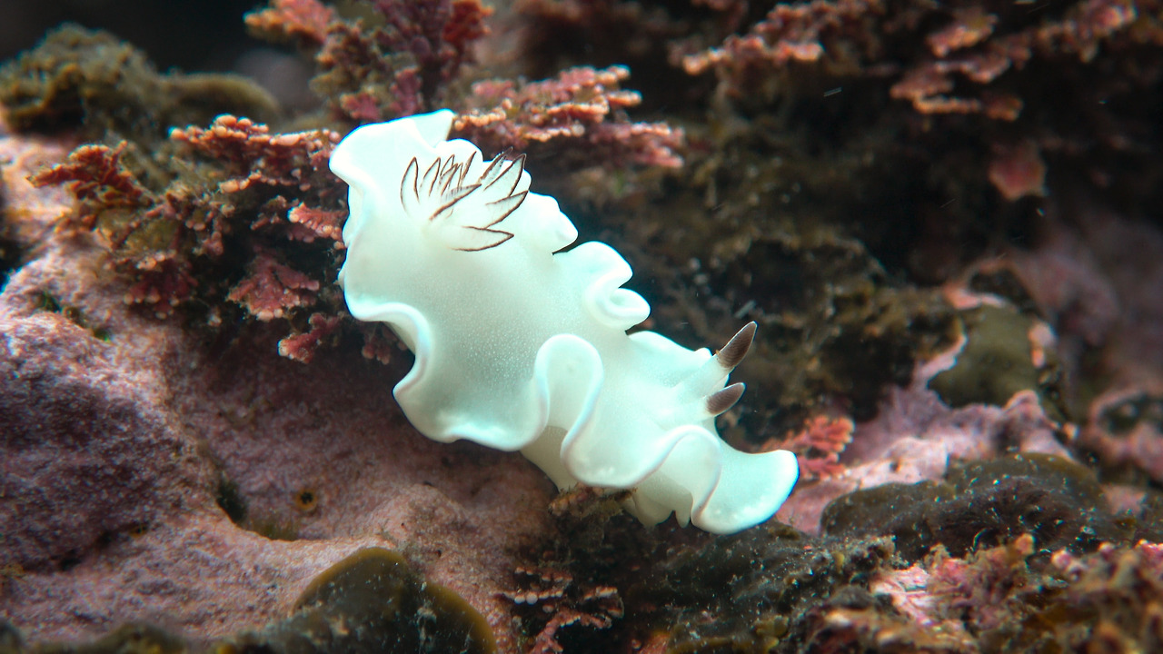 본격적인 촬영이 시작된 후에는 정말 다양한 갯민숭달팽이나 유사한 부류들을 많이 만났다. 우리나라에는 딱히 이 부류를 구분하는 명칭이 없어 영어를 차용하자면, 넓은 의미로 바다달팽이류를 통틀어 부르는 영어 표현은 Sea Slug이고 그중에서 갯민숭달팽이에 해당하는 것을 Nudybranch라고 한다. 즉 모든 갯민숭달팽이(Nudybrach)는 씨슬러그지만 모든 씨슬러그가 누디브랜치는 아니다. (https://morefundiving.com/nudibranch-or-sea-slug/)