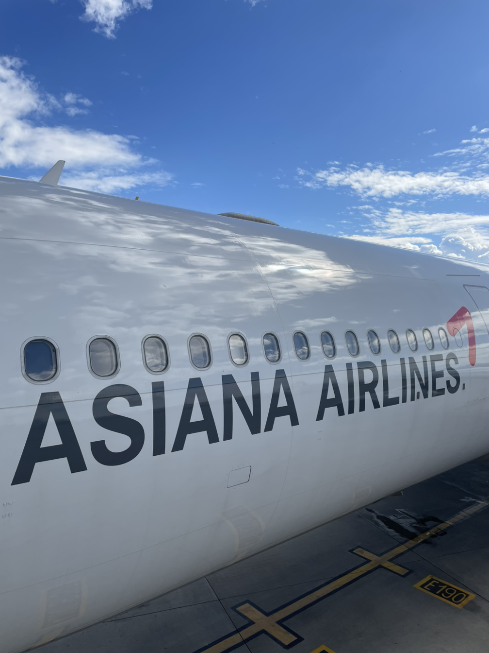 항공기에 새겨진 아시아나 항공의 로고