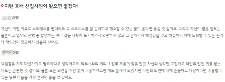아래는 LG화학의 SCM팀 두 대리들이 바라는 후배상이다.