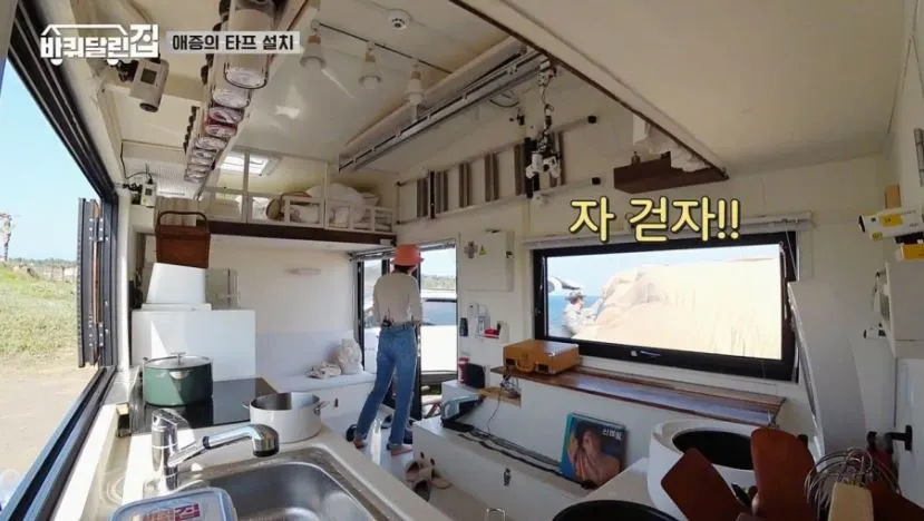 그렇다고 예능 소재로 자리 잡아 버린 여행을 포기할 순 없는 노릇. 그래서 제작되기 시작한 것이 ‘여행을 하긴 하되 사람과 접촉하지 않고’ 정주하는 캠핑 방송이다. 떠나서 정주하는 삶. 앞뒤가 안 맞는 것 같지만 최근 만들어지는 예능들은 비대면의 정주를 지향한다. 성동일, 여진구가 출연하는 <바퀴 달린 집>은 캠핑카를 타고 하루 한곳에 머물면서 집주인의 친구들을 캠핑카로 초대한다. 있을 건 다 있는 럭셔리 카라반을 뒤에 싣고 주변에 아무것도(특히 사람) 없는 벌판이나 해안가에 짧게 정주하며 이들은 ‘힐링’을 취한다. 정유미와 최우식의 <여름방학>도 마찬가지다. 이들은 어린 시절 여름방학 할머니 집에 머물 듯이 바닷가 시골 마을 집 한 채를 빌려 단기간 머물며 밥을 해 먹고 개를 키우며 서핑을 한다. 이런 류의 힐링 프로그램의 원조격이라 할 수 있는 <삼시세끼>의 변형인데, 코로나 시기에 돌아 왔던 <삼시세끼-어촌편5>는 심지어 무인도에 들어가 완전히 자급자족하는 과정을 보여주기도 했다. 첫 방송부터 이들은 이 섬은 주민이 한 명도 없고, 슈퍼조차 없다고 설명한다.