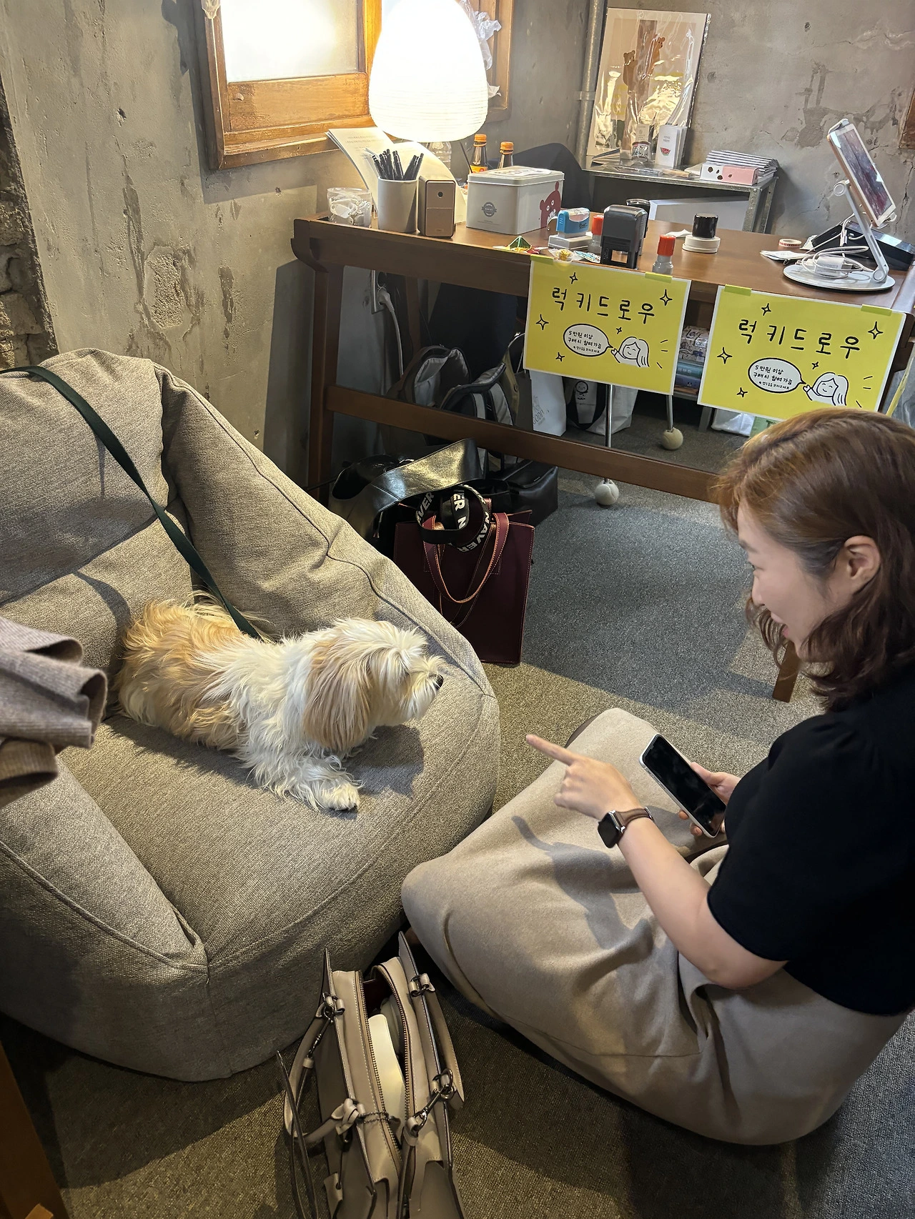 처음 보는 손님과 함께 다리 감싸고 앉아서 물건 이야기 나누던 순간