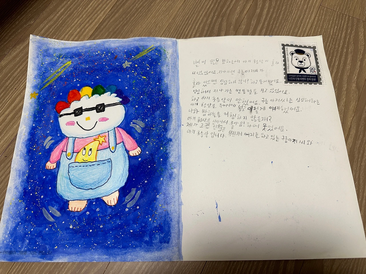 그림을 인형으로 만들고 싶다는 건 아이의 오랜 소원이었으나, 쉽게 이루어지지 못했다. 그러다 고마우체국 프로젝트를 보았고, 아이에게 자신의 생각대로 글과 그림을 만들어보라고 했다.