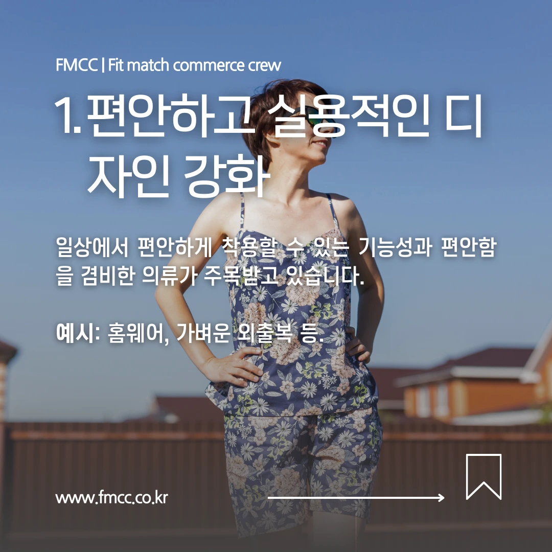 ‘아보하’ 트렌드에서는 일상 속에서 편안하게 입을 수 있는 의류가 중요한 요소로 부각됩니다. 소비자들이 하루 종일 편안하게 착용할 수 있는 기능성 의류, 홈웨어, 또는 간단히 외출할 때 입기 좋은 캐주얼 룩 등이 선호되죠. 스타일리시하면서도 실용적인 디자인으로 일상에 스며드는 옷을 제공하는 것이 포인트입니다.