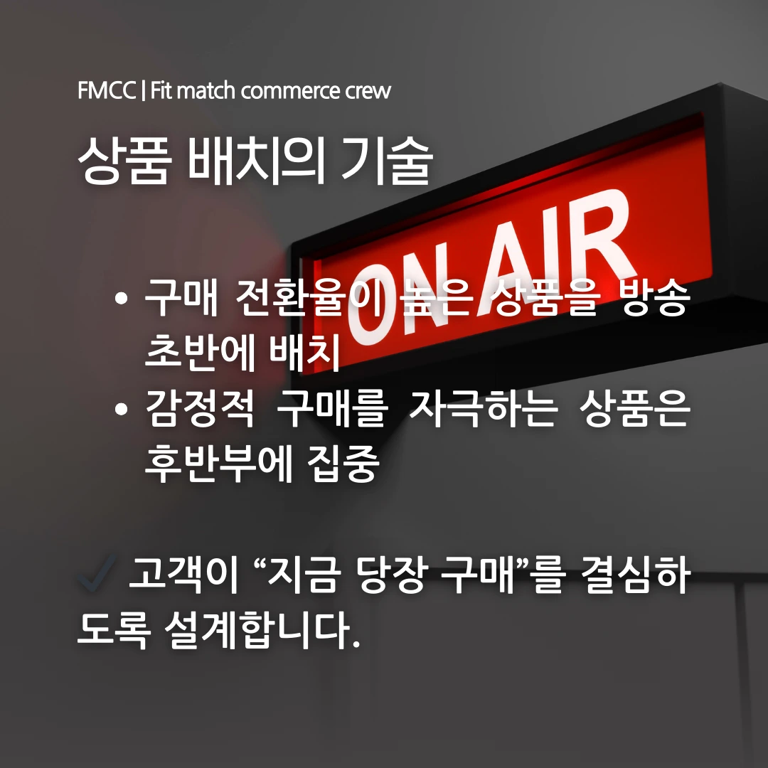 •후반부에는 감정적 구매를 자극하는 상품을 배치해 방송의 완급을 조절하세요.