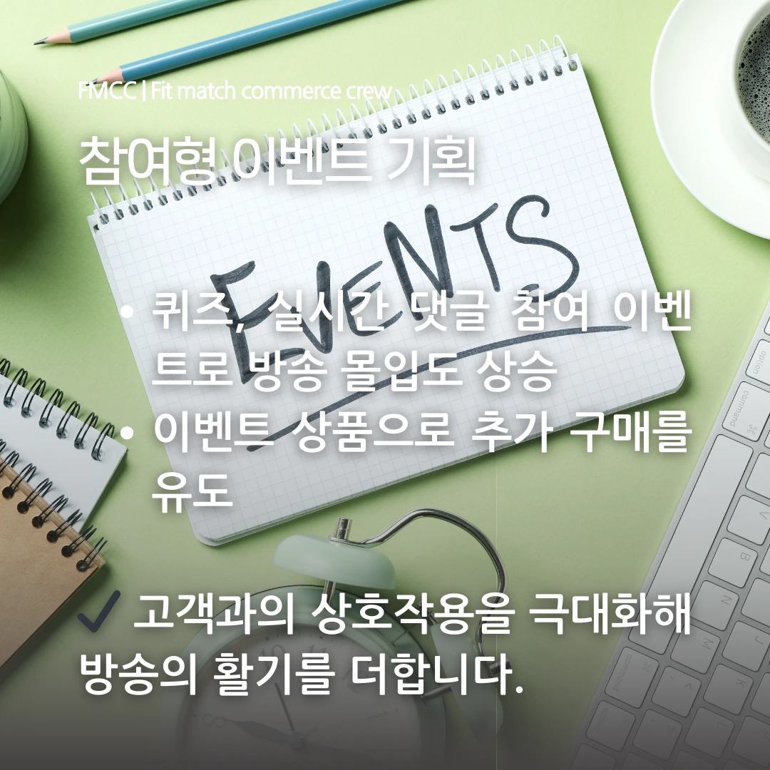 이벤트는 고객의 흥미를 높이고 방송에 몰입하게 만듭니다.