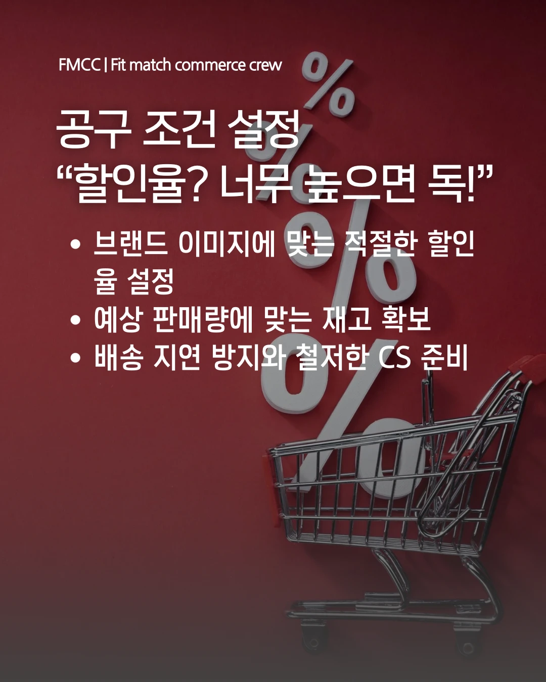 공구의 또 다른 핵심 요소는 가격 설정입니다. 공구 특성상 할인율을 통해 소비자에게 매력적인 조건을 제시해야 하지만, 무조건적인 할인은 오히려 브랜드 가치를 훼손할 수 있습니다.