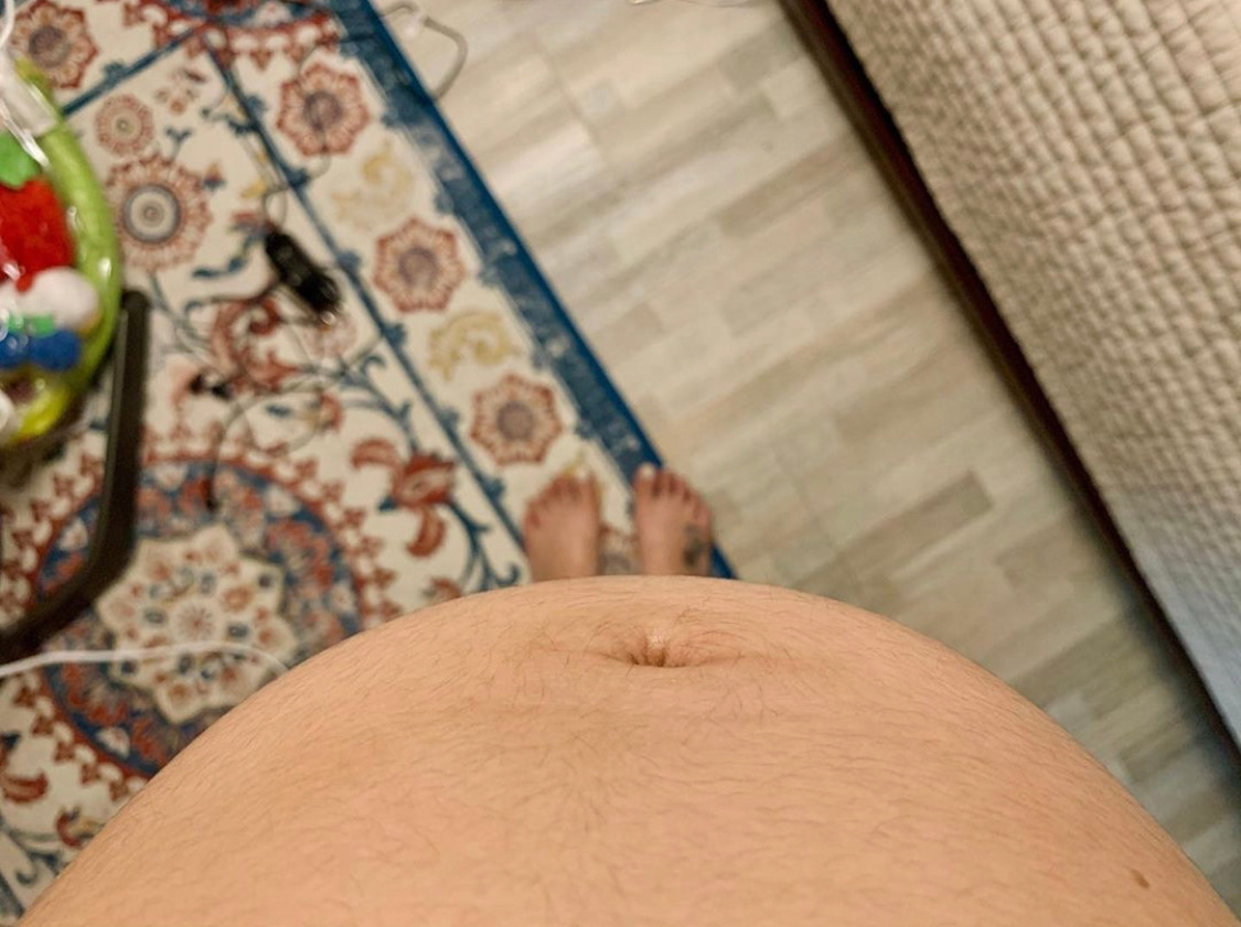 남편은 나의 배와 엉덩이 크기로 임신을 실감한다.