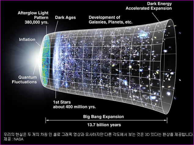 홀로그램 우주(Holographic space)란 미국 태생의 영국인 물리학자인 데이비드 봄이 처음 주장한 가설로, 우주와 경험적 현상 세계는 전체의 일부분일 뿐이며, 우리가 보는 부분의 모습은 홀로그램의 간섭무늬처럼 질서가 결여된 모습이고, 실제 의미를 가진 전체는 더 깊고 본질적인 차원의 현실에 존재한다는 이론이다.