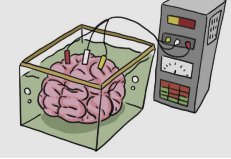 우리의 뇌를 머리에서 분리해서 통 속에 넣고 생명력을 유지하게 한다. 그리고 모든 외부의 자극을 컴퓨터로 만들어서 뇌에다가 주입하고, 뇌가 가상의 환경만을 느끼도록 만든다. 그렇다면 뇌는 자신이 진짜 세계와 마주하고 있는지, 아니면 주어지는 자극에 반응하고 있을 뿐인지 구분할 수 없다. 마찬가지로 우리가 실제 세계와 마주하고 있는 것인지, 통 속에 들어있는 우리의 뇌가 가상의 자극을 현실인 것처럼 느끼고 있는 것인지 알 수 없다는 것이다. 마치 파블로프의 개처럼 전기적 신호와 화학적 신호에 반응하는 자유의지 없는 생체적 매개체인가 하는 것이다. 벤자민 리벳의 자유의지 실험에 의하면 우리의 자유의지란 무엇인가? 그리고 인간에게 자유의지란 존재하는가에 의한 의구심을 낳는다. 우리가 공을 집으려 한다고 하자. 당연히 공을 집으려는 인간의 의지, 그리고 그 의지에 대한 전기적 신호가 손에 전달되고 그리고 공을 집을 것이다. 그러나 리벳의 실험에 의하면 실제로는 전기적 신호가 인간의 의지에 선행한다는 것이다.