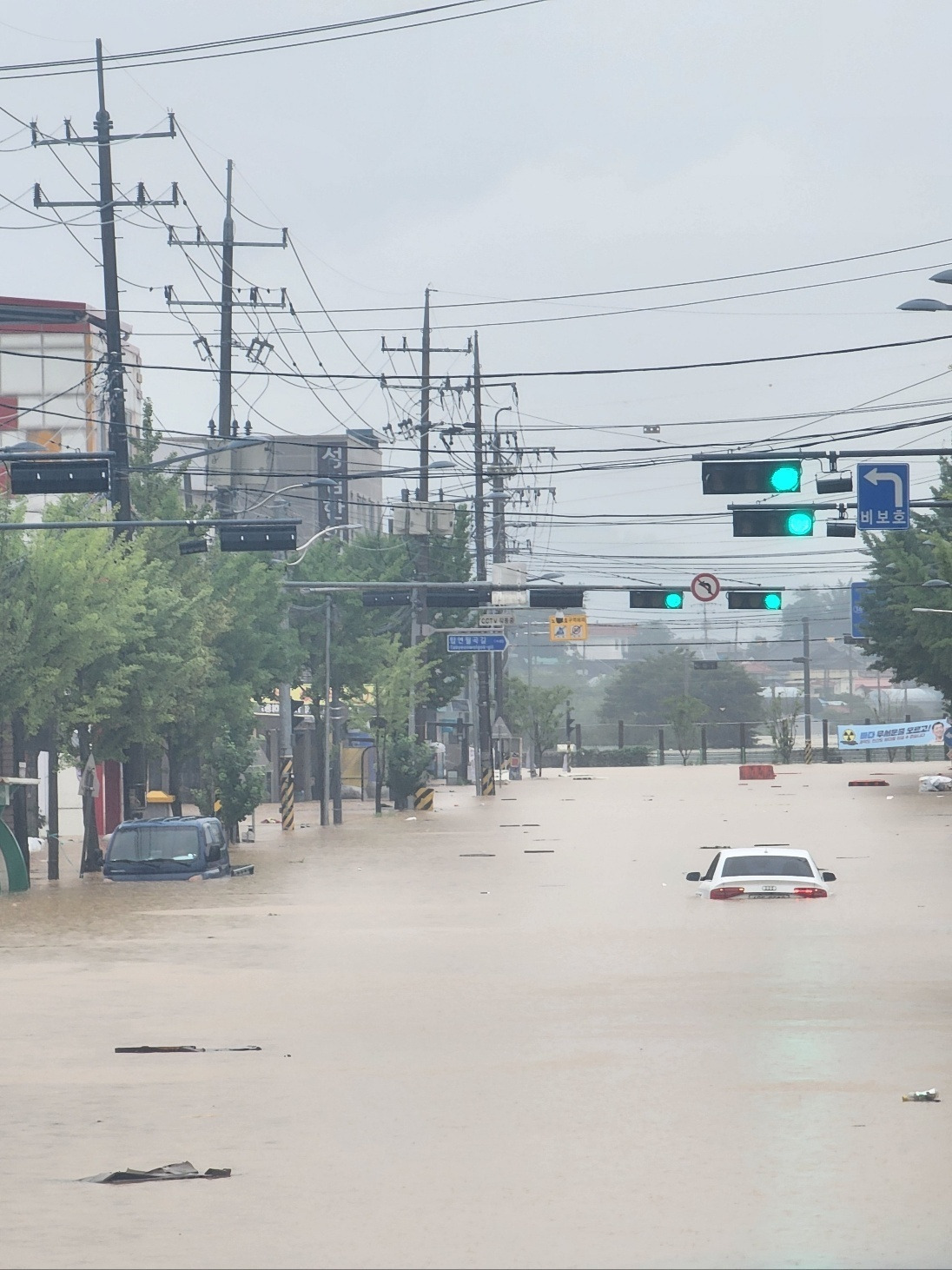 뭐 어떡하나. 일단 냉장고와 싱크대를 저 멀리 옮기고 폭풍 걸레질을 시작했다. 폭풍 청소를 하면서 흥분을 가라앉지 않을 수 없었다. 자금 한 푼이 아쉬운 우리였기에 냉장고 고장이라도 났을까 노심초사. 전원을 연결해 보니 다행히 작동은 했다. 문제는 싱크대. 청소를 마친 우리는 당장 임대인에게 전화를 걸어 물난리가 났다고 했다. 나도 모르게 다소 흥분한 목소리여서 그랬던지 일 처리는 빨리 해주었다. 시공자를 다음 날 아침 부르기로 했고 우리는 다음 날만을 기다렸다. 그러나 이놈의 폭우는 그치질 않았다.