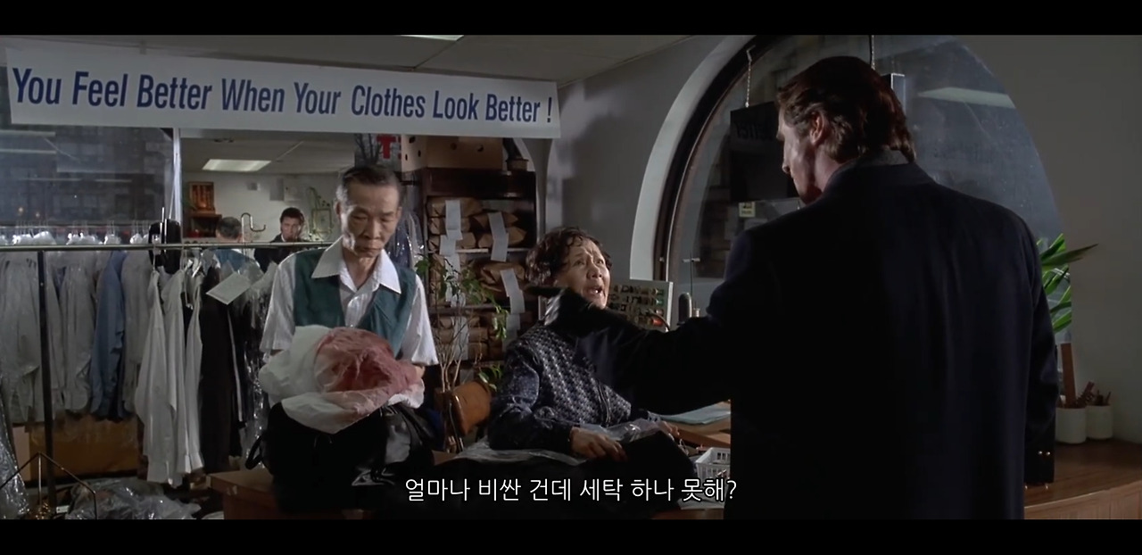 인상깊었던 씬 중 하나는 패트릭이 사람을 죽여 가방에 넣고 옮기다가 지인을 만나게 되는 장면인데요. 그 지인은 패트릭의 가방을 보고 묻습니다. 어느 브랜드냐고 말이죠. 패트릭은 대답합니다.